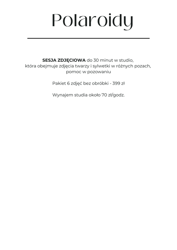 - Sesję zdjęciową w moim studio, jest również możliwość sesji plenerowej.